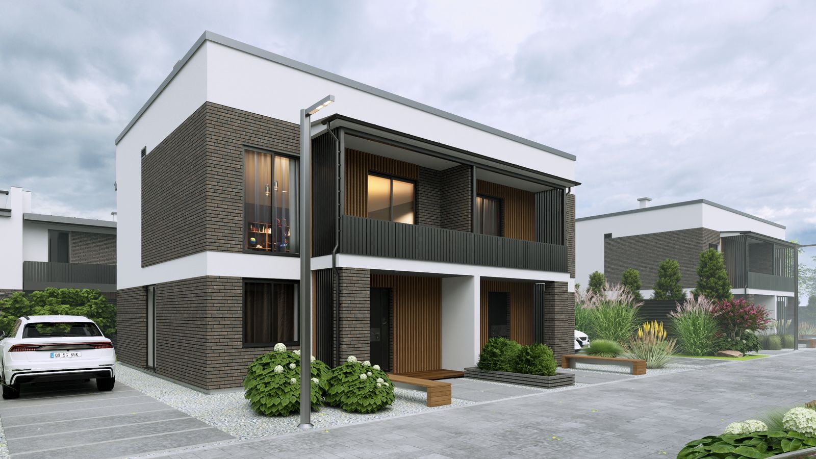 На території передбачено велику кількість паркомісць, до кожного таунхауса вже підведено електрику та газ, облаштовані власні свердловини та септики — повна автономність для вашого спокою.
