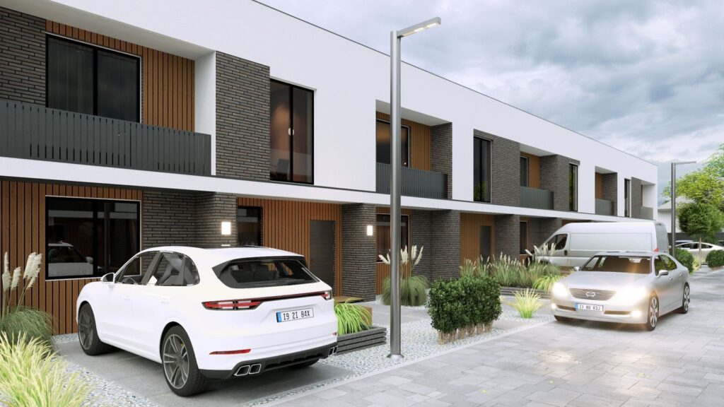 На території передбачено велику кількість паркомісць, до кожного таунхауса вже підведено електрику та газ, облаштовані власні свердловини та септики — повна автономність для вашого спокою.